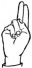 На ћирилици написано РЕЉА ЧВОРИЋ састоји се из 10 слова [?]. Исписано ћириличном једноручном азбуком за глувонеме: